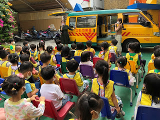 週三上午,進行娃娃車安全宣導,即搭車的安全,就娃娃車的外觀,內部座椅、配備,車子的年限、司機與隨車老師的資格,每日出車前應注意的事項,路上行車應遵守的規則,小朋友上下車和車上的秩序等,詳細的介紹,在麗娟老師、佳莉老師的帶領下,對娃娃車的交通更加了解與認識。