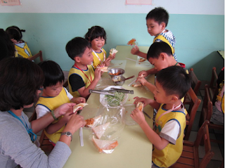 宇喬,從未曾離開過家人,開學初哭了三整天,從守在辦公室-活動室-進教室,到今天已能融入群體中,雖然偶而會鬧點情緒,但是他的進步再次證明,成長是需要時間,需要耐心的等待、引導並給予機會的。