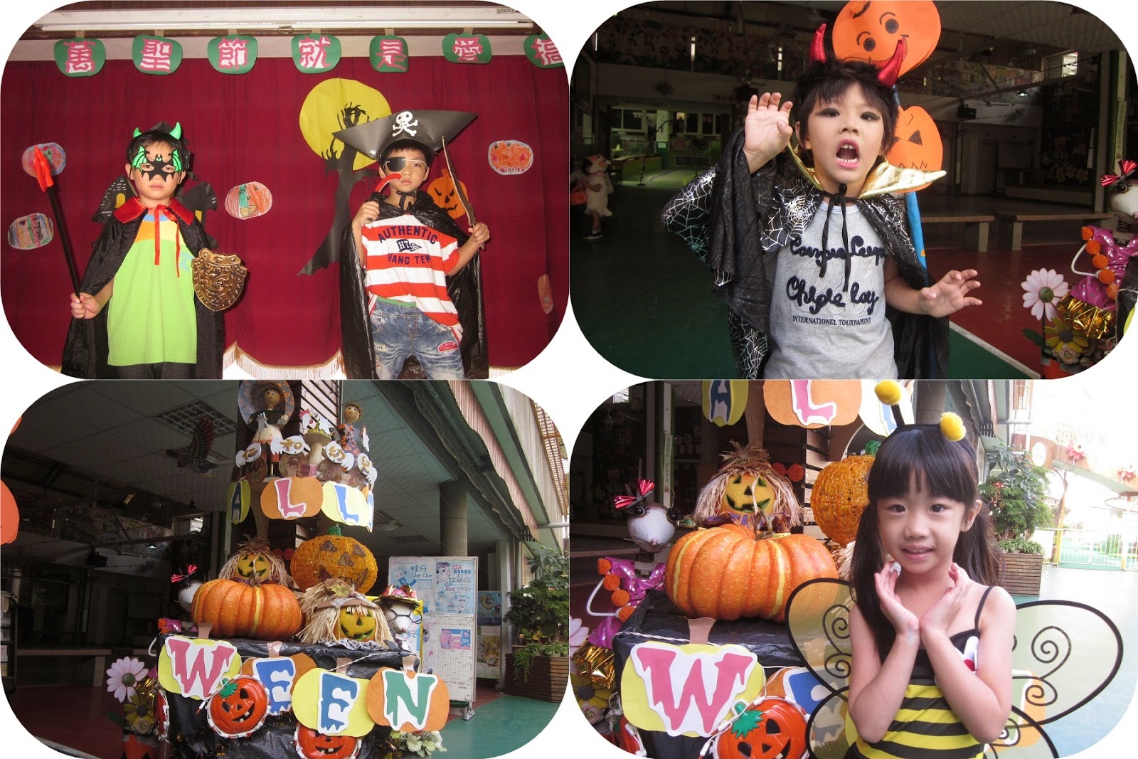 今天舉辦萬聖節活動-就是愛搞怪,孩子們一早來園,就裝扮成不同的造型,個個都很開心!