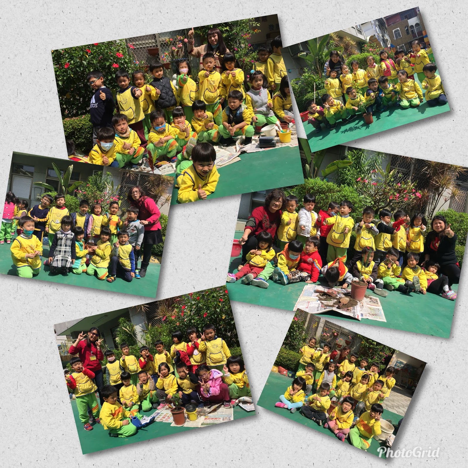 麗娟老師說明植樹的意義,佳莉老師示範如何將花苗移栽到大花盆,這動作對大班小朋友而言並不陌生,好幾位小孩告訴園長,這幾年贈送的花苗長很大了!