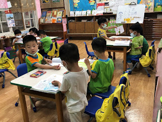 勤洗手、戴口罩、量體溫三個防疫的措施,對幼兒園小朋友而言並不陌生,因為腸病毒的緣故,衛生單位早就要求要勤洗手,並配合洗手的口訣~濕-搓-沖-捧-擦五個步驟,讓小孩們養成正確洗手的好習慣。量體溫~早上入園時,門口老師量體溫後還得檢查手和口是否有起泡等腸病毒的症狀,確定沒有才可進校園;戴口罩則是隔離飛沫傳染的好方法。班上若有小孩罹患腸病毒,同一週有二個,就需停課七天;停課,對大多數家長而言,是會造成困擾的,因此親、師、生都不能疏忽的。