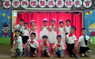 為了明天即將舉辦的第四十四屆畢業典禮暨成果發表會,大人、小孩都動了起來,舉凡情境佈置、典禮的預演,表演的彩排,都樂在準備中。各班小朋友在老師的帶領下,隨著音樂的播放,依照出場的順序上下台,手舞足蹈的享受在表演中,因著練習的次數熟練與進步;特別是大班小朋友在自我介紹部分,從剛上台時的羞怯、結巴,一次次的練習、增強信心到能自在、自然的開口表達,孩子們克服了心裡的障礙與上台時的恐懼。