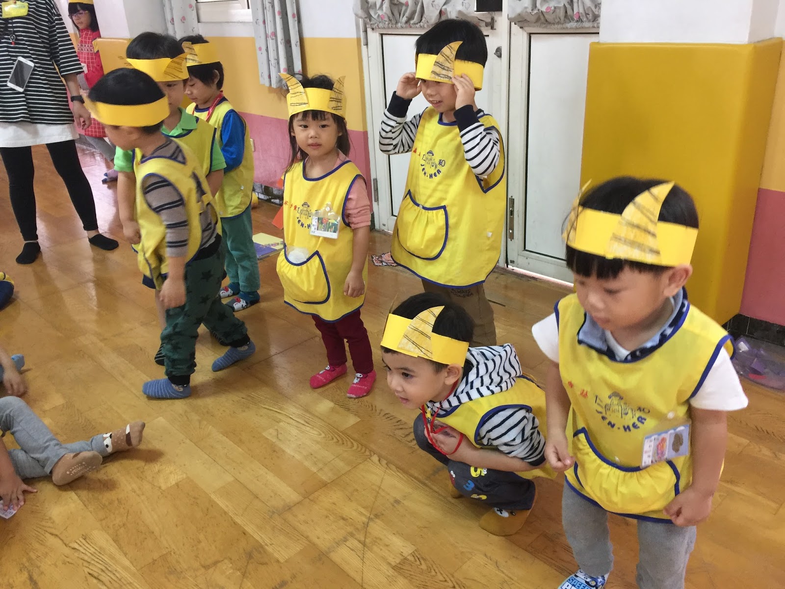 在園長的引導下,自我表達沒有朋友的小孩,勇氣可嘉,願意在人前表達自己的需求,尋找支援,也因此得到幫助,如願的和對方搭起友誼的橋樑;接著大家一起玩好朋友的猜拳遊戲~好朋友我們行個禮,握握手呀來猜拳,石頭布呀看誰贏,輸了就要跟我走。大家玩在一起,樂在當中。