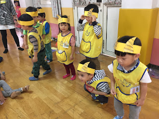 集合時,以朋友為話題和小朋友分享,接著問:「在幼兒園沒有朋友的請起立。」從大班到幼幼班都有人站起來,十個不到。園長一個個詢問,他們最想和誰當朋友?孩子們清楚的表達;於是,依序請他們鼓起勇氣,走到他想要的朋友面前,開口說:「請問我可以和你做朋友嗎?」若對方願意,就會說「我願意」,接著彼此握手、擁抱。