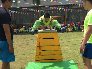 大家都動起來了,特別是在跳箱的部分,跳過六層的想要超越七層,七層的想要超越八層,八層的想要挑戰九層,九層的還想再往上突破。小朋友想要有好的表現,唯一的方法就是練習,練習就會,會進步。