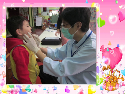 塗氟的過程中,看到醫師的專業、細心、耐心、用心與愛心,原來只服務五歲以下的,不收取掛號費,只要刷健保卡,之後開放五歲以上,因健保不給付,但醫師說沒關係,孩子要塗他樂意服務。醫師不只是塗氟,還觀察小朋友的牙齒,遇有特別的,會告訴老師,當中發現有兩個寶貝的牙齒是「雙胞胎牙」,醫師說這機率很低,換牙後是否還會長雙胞胎牙就不一定了,建議換牙時把它保留下來當紀念;還有兩個大班小朋友已經換了九顆恆牙。