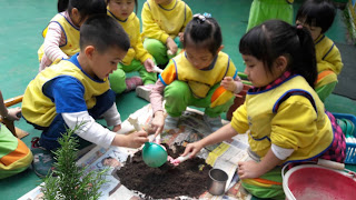 除此之外,每年的植樹節,贈送小朋友一株花苗或樹苗,藉此讓小孩們了解種花、種樹的重要性,並學習照顧,進入生命教育的課題,從移栽到照顧花苗、樹苗的過程,讓孩子體會從小苗到成長、茁壯、開花、結果,過程中的關係與教育。