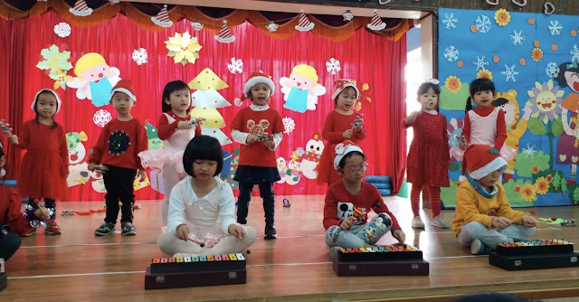 因疫情之故,無法全面開放家長入園,採實名制邀請,最多二位家人。大夥兒享受在歡樂的氣氛中,小孩們熱情的表演平日所學的,家長們也以掌聲來回應小朋友的演出,台上台下互動良好。壓軸的聖誕老公公在合唱曲的「叮叮噹、叮叮噹、鈴聲多響亮….」聲中出現,一出場就得到熱烈的掌聲。