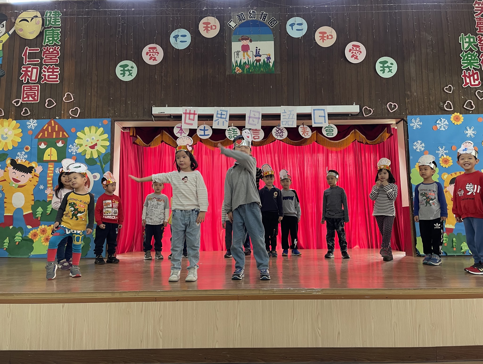 2月21是世界母語日,因此節日的到來,仁和每年均會舉辦「本土語言分享會」。今年延到三月才舉辦,為了讓小孩們了解分享會為何延到三月?問:世界母語日是2月21日,那今天已是3月4日了,為什麼延後呢?小孩中總有金頭腦的,頭歪了一下說,因為「221那天是放假日-週日」那隔天222呢?「有地震演習」223?「大班參觀防災教育館」224?「中班參觀防災教育館」225?「小和幼班參觀防災教育館」,孩子們有著超強的記憶和概念。