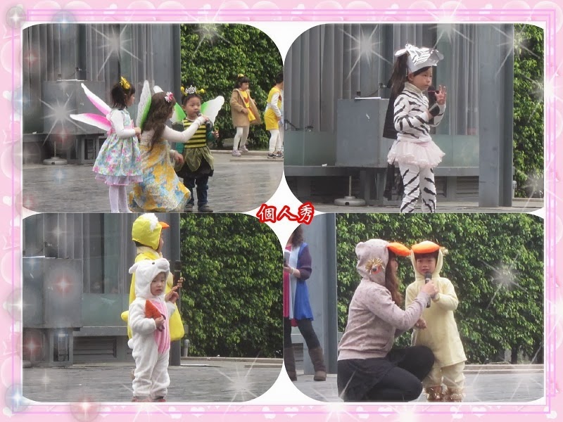 才藝比賽與聖誕活動時間只相隔一星期,老師們參加意願低,但礙於服務處主任熱情的邀約,又聖誕活動向曾議員募摸彩品,理應禮尚往來才是。園長指定舞曲和指導老師,原屬意由單一班級參加,但都有困難,只好跨班級。於比賽當週成軍並做練習,在Kady媽咪的指導下,孩子們團結合作,當天穿著幼兒園的表演服,園長還情商造型師朋友來為小朋友化妝、做造型,果然不同凡響,應驗成功是屬於用心準備的人。