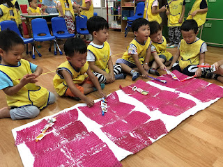 後門的小葉欖仁如期在週一進行修剪的工程,為了防颱做準備。修剪後小朋友覺得很亮,但也覺得比較熱。昊謙童言童語的問:「叔叔為什麼要砍樹?」「哦~叔叔沒有砍,是修剪哦,樹枝太長要剪短,大風大雨來時,才不會斷掉壓到人。」小小孩哦的一聲跑走了。