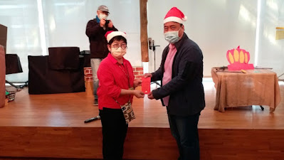 今天12月25日聖誕節,舉辦歡樂慶聖誕,因為疫情之故,無法全面開放,以實名制邀請,最多二位家人。除了有小朋友們的表演還有禮物交換,以大中小不同年黏來進行;摸彩-老師們積極的募集,共有大小不同的禮物將近70份,有市長、議長、立委、議員、家長、廠商和民間友人,為了讓更多家庭有機會抽到獎的喜悅,於是老師們決定以家戶為單位,一家一張。
