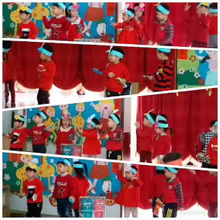 2月21日上學第一天,剛巧是221世界母語日,幼兒園每年都會在母語日當天做成果分享會,今年巧遇開學日,因此提前在歡樂過春節的活動中,各班以台灣囝仔歌為表演的主題,大班十二生肖的戲劇表演;中班過年景象的組曲表演,恭喜大家過個好年;達文西的舞獅造型讓人驚豔、印象深刻;諾貝爾的歡樂組曲,孩子唱作俱佳;天鵝家的錢,希望大家有錢好過年;大家歡歡喜喜的樂在表演中。透過兒歌吟念,孩子們台語的聽、說能力也愈來愈進步了。