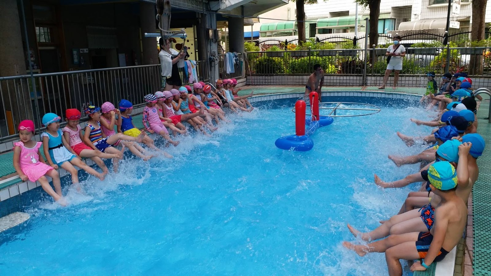 孩子們游泳、玩水,除了有老師,還需有教練在旁;與教練約定的時間是週二、週五;第一天游泳、戲水,遇雨,於是聯絡教練,隔天週三可否來指導?教練說好,立馬廣播告訴小孩們好消息,孩子們才放下失望的情緒。