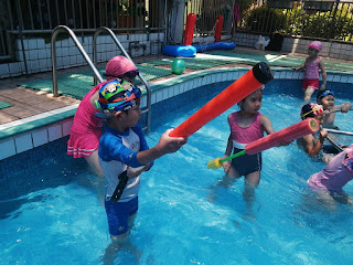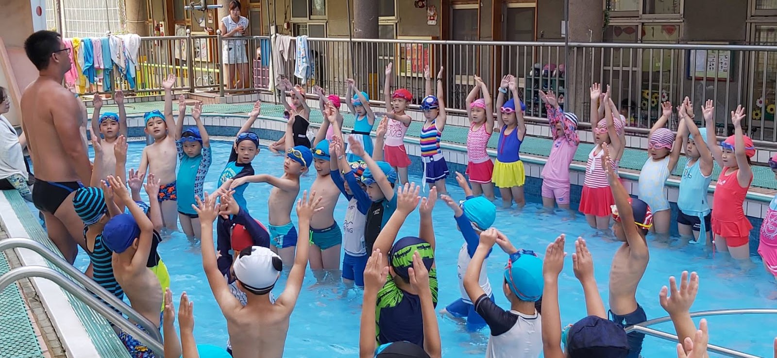 週三,一樣的場景又出現,於是帶著小朋友一起吟唱祈禱歌,懇求天父上帝賞賜好天氣,讓太陽公公露臉,可以順利的游泳、戲水。果真,天父上帝垂聽小孩們同心的禱告,成全他們,順利入泳池玩水,在教練的帶領,老師的協助下,快樂、開心的玩著。