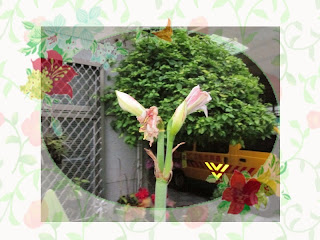 上星期發現草場有一盆孤挺花開了兩朵花,好興奮哦,立刻將他搬到前門花園供大家欣賞,請老師帶孩子去欣賞。原本盛開的兩朵花經過一個星期凋謝了,還好有兩朵含苞待放的花苞,原來兩朵凋謝後,含苞的花朵也盛開了。