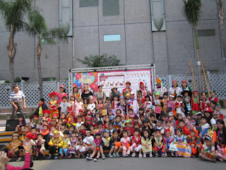 10月27日星期四,每個孩子的裝扮都不一樣,都很可愛。上午9時30分,原住民大會師,小朋友們熱熱鬧鬧集合在活動室,在Grace媽咪的~原住民有幾族?十四族,今天多了印第安族、還有怪獸族~哈哈,怪獸族就是我啦!加上可愛的動作,實在有夠古錐。隨著Halloween的音樂,一班班小朋友上台表演,揭開活動的序幕;闖關遊戲~憤怒鳥、喝勇氣湯、魔法拖鞋,在關主- Michelle、Lydia和Kady的帶領下,孩子們玩得不亦樂乎。