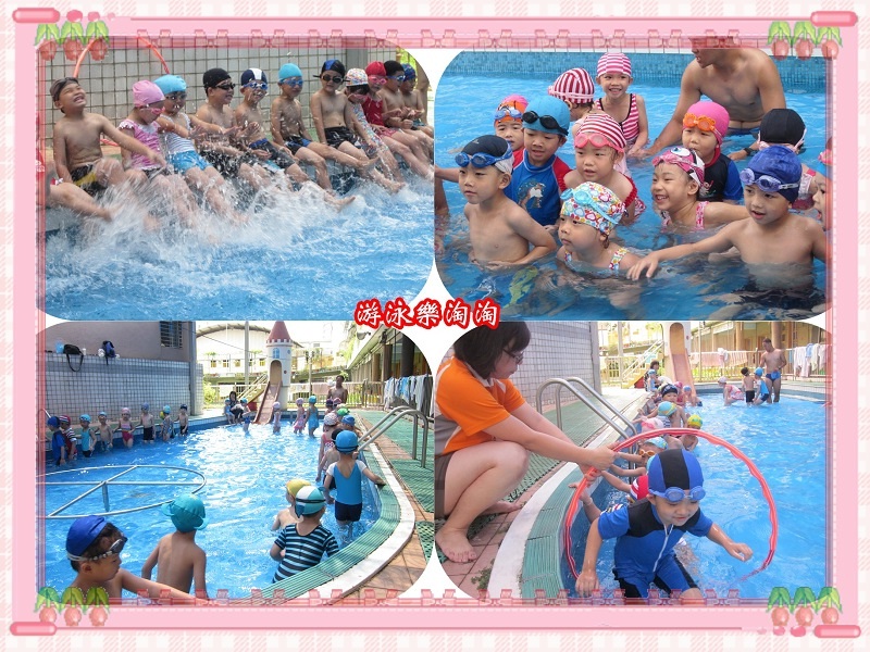 另一個最夯的活動是游泳。游泳是夏天最佳的消暑活動,因著游泳課的到來,告知小朋友游泳時必須遵守的規則,除了身上的裝備外,泳池內不能尿尿、吐口水、嬉鬧、奔跑等,再三的叮嚀、提醒,希望孩子們能在安全的環境下享受游泳的樂趣。