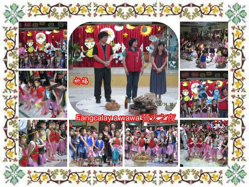 特別是「Fangcalay a wawa營火之夜」,除了美芳老師帶領的四人團隊外,還有原民會主委、蔡議員和崑大周梅雀老師也蒞臨同歡,而家長們的參與,讓營火之夜更加熱鬧;寶貝們穿上了美芳老師準備的衣服,和老師們編製的頭帶,由蔡議員祈福和點燃營火下揭開晚會的序幕,接著在美芳老師的主持,麗娟、慧箴老師的串場,唱歌、跳舞、玩遊戲,大家快快樂樂、熱熱鬧鬧的過了一個美好的夜晚。