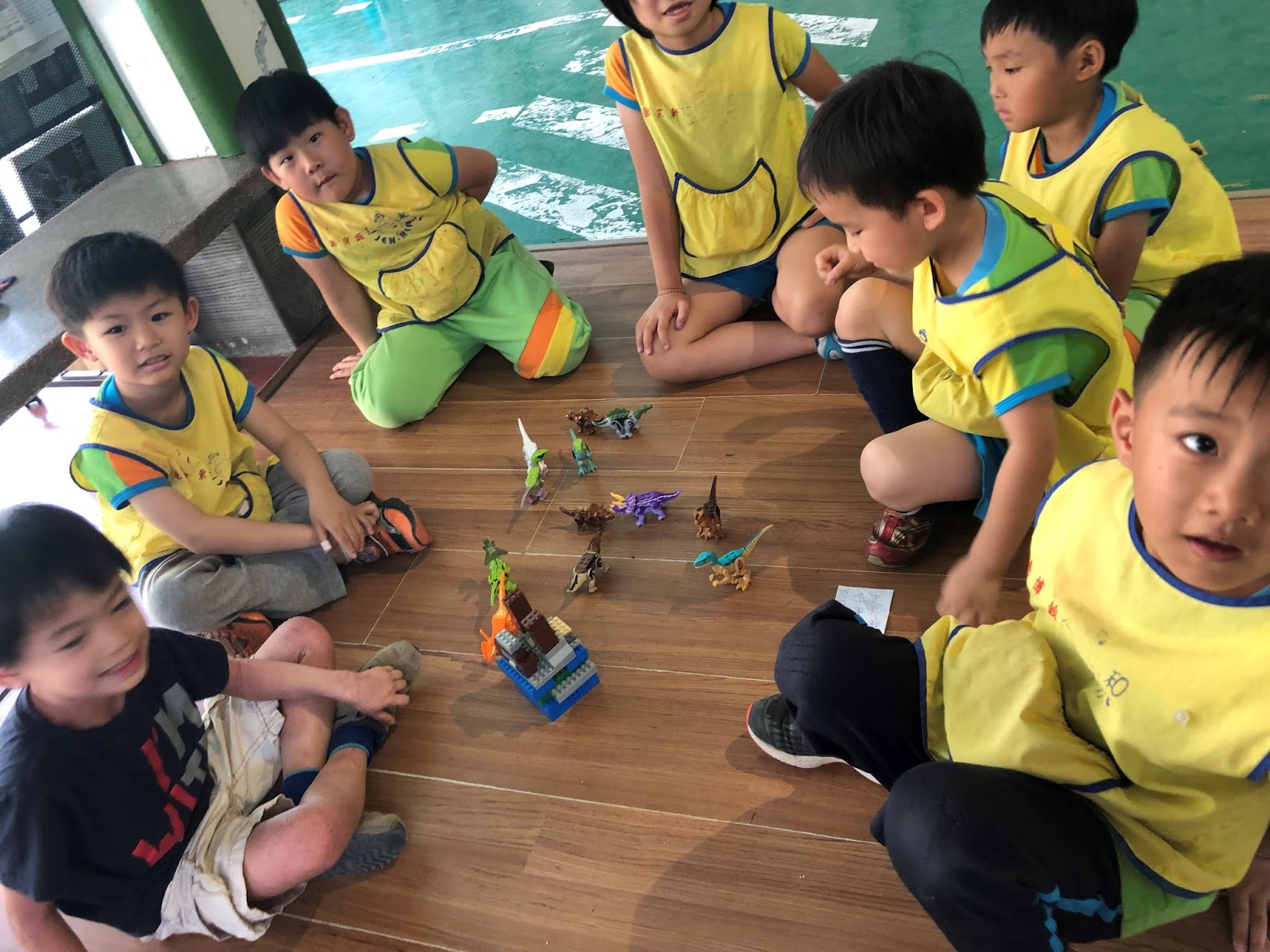 孩子們專注在自己的作品上,堆疊出屬於自己獨一無二的作品,一件件的呈現在大家的眼前,當分享作品時,眼中充滿了亮光與自信,同時也欣賞別人的作品,彼此分享;酷愛恐龍的震東,以恐龍為創作主題,幾個男生圍繞旁,博鈞說:「我長大要研究恐龍。」