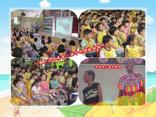 本週是多元文化教學最後一堂課,介紹原住民美食,原本計畫由美芳老師採購食材,再教廚房作菜,當日中午來個原住民美食饗宴,所以時間由週一、二、三延至週四,但計畫永遠跟不上變化,美芳老師事情繁多無法提早作準備,所以只能透過影像檔介紹,只能看,摸不到又吃不到,寶貝們降低了學習的興趣,所以大家的願望是有機會能夠品嚐到原住民的美食。謝謝美芳老師,從四月29日到本週,帶領我們認識阿美族食、衣、住的文化。