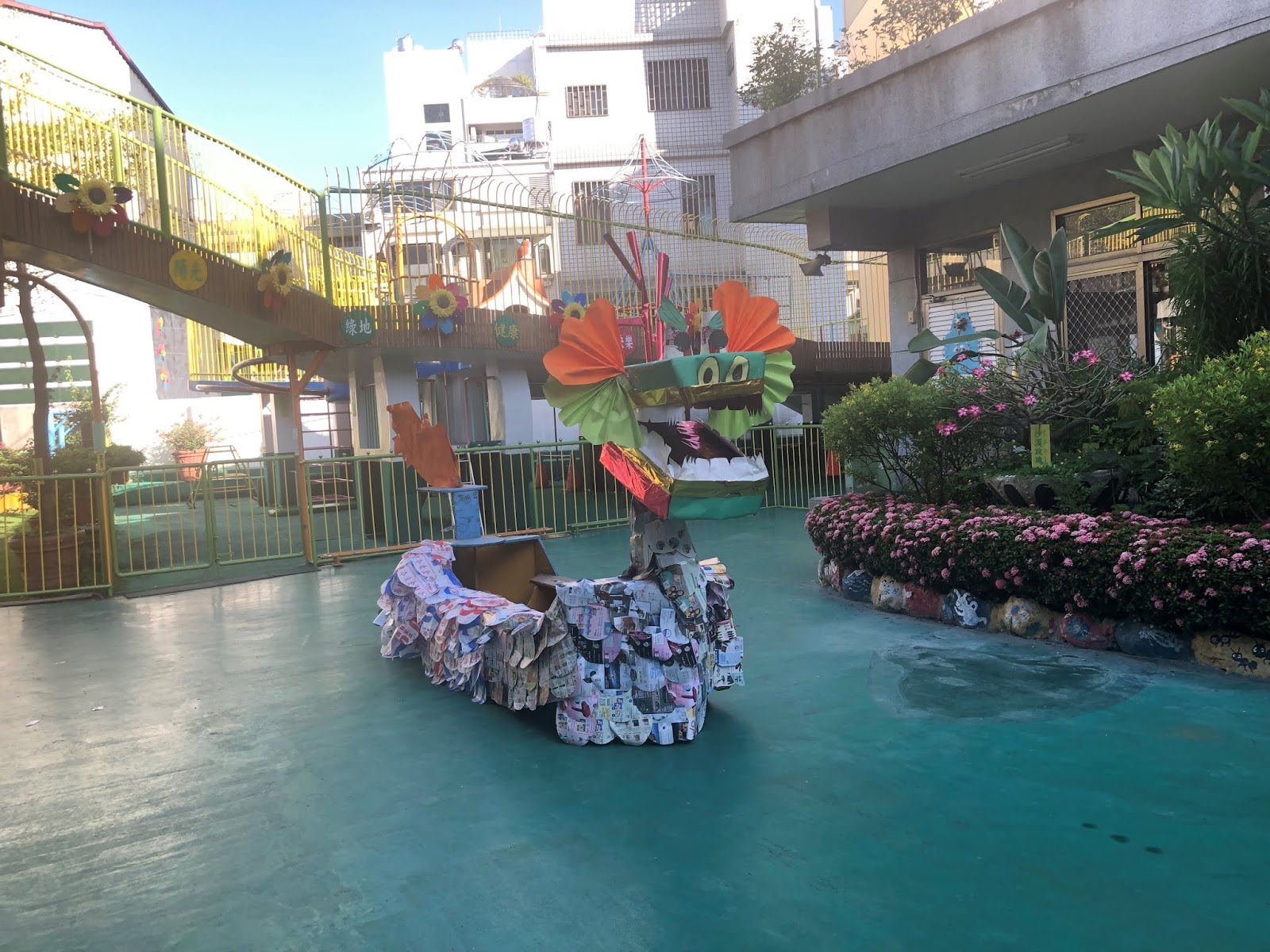 校園環境的整理,每天教室地板、桌椅、門把、門窗等漂白水稀釋後的擦拭,每週玩具的清洗、曝曬,廁所的消毒,清潔阿姨和老師們都相當用心、非常辛苦的希望提供小朋友一個乾淨且衛生的學習環境。