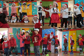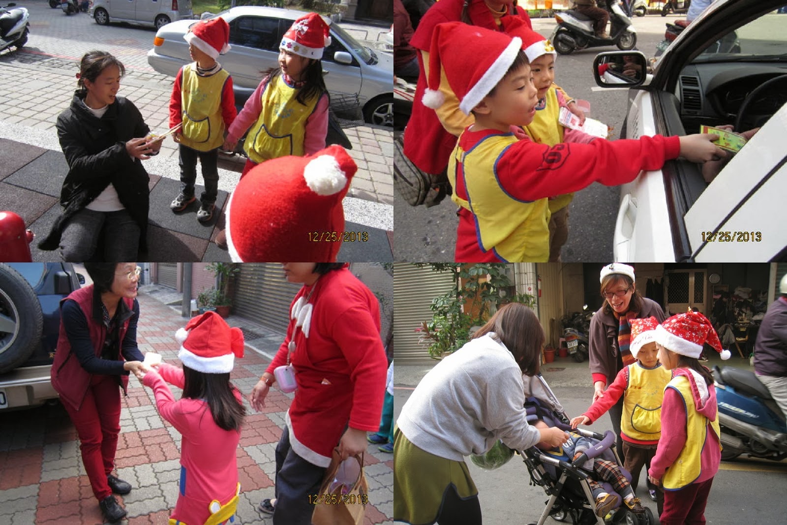 除了讓小朋友享受聖誕歡樂的氣氛外,星期三聖誕節當天,更安排寶貝們穿紅色衣服、紅色帽子,扮演聖誕小天使,到社區送聖誕祝福卡,體驗付出也是一種快樂的學習。未外出前,先行將兩份摸彩品送出,可愛的孩子們個個低頭禱告,希望得獎的是自己;邀請最小的濰寧和最大的佑謙來抽獎,幸運之神落在加恩和映萱的身上。