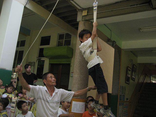 除了衛生保健工作外,安全教育每半年需做一次宣導,上學期請消防宣導車來幼稚園;本學期因著中班單元主題「大火怪」,中班小朋友參觀防災教育館做體驗外,星期四下午舉辦全園性的消防演習,並邀請合作廠商支援緩降機的操作,讓孩子從實際體驗操作中,了解安全的重要。