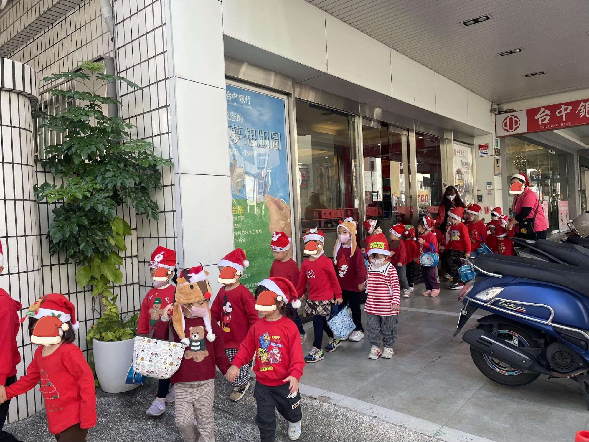 隊伍行經商家、區公所、銀行與市場,孩子們雙手遞上聖誕小卡,用稚嫩的聲音大喊:「聖誕快樂、新年恭喜!」那可愛的模樣瞬間融化了路人與長輩的心,大家直呼:「好可愛喔!」並爭相拿出手機拍照。