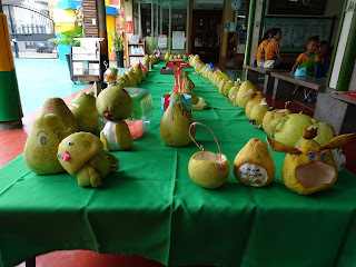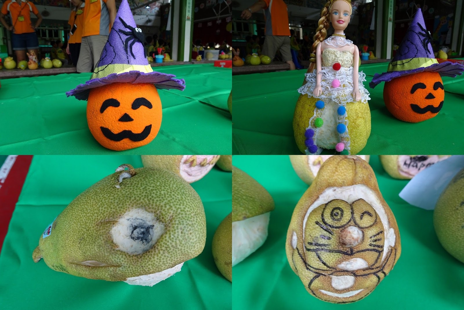 柚子創意造型豐富多樣~有芭比娃娃、巫婆、草莓、天使、龍貓、刺蝟、多拉A夢、憤怒鳥、玉兔、毛毛蟲、皮卡丘…等等,大家卯起勁來,創意十足,連孩子走秀也挺神氣的。